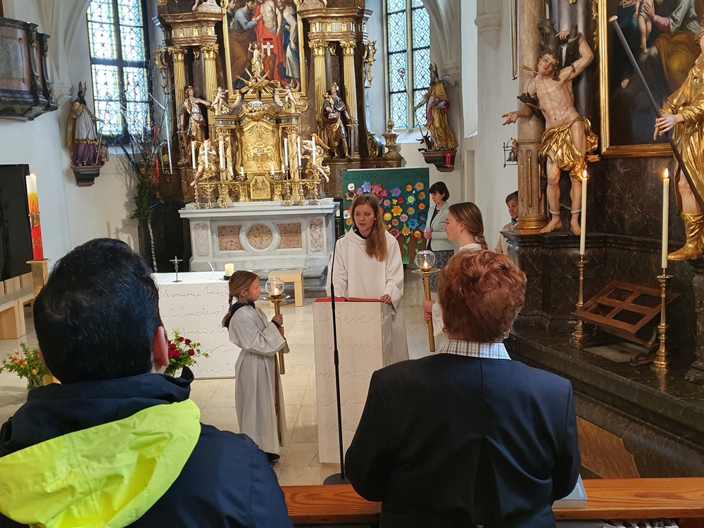 Pfarrer Claudiu Budau, der mit der Pfarrgemeinde feierte, freute sich über die Mitwirkung der Musikschule sowie über die Mitgestaltung des Gottesdienstes durch einige Firmlinge, die Kyrie-Gedanken und Fürbitten vortrugen.